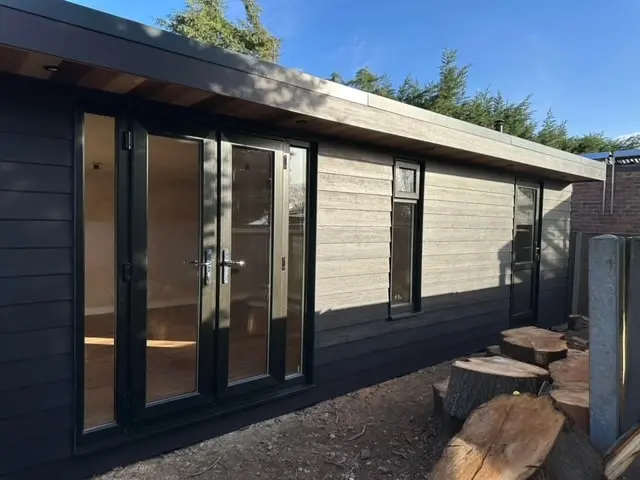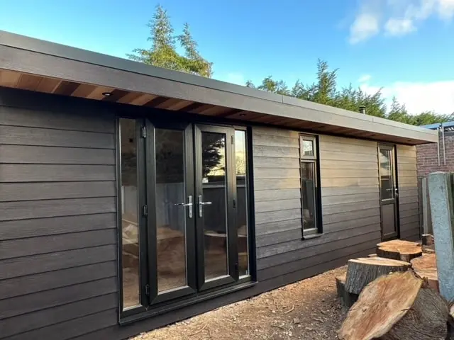 Our latest Hardiplank room in Ipswich was completed over a 13 days project for a garden gym room. The garden room is constructed with Black Hardiplank which gives it a timeless and clean look. We also installed large windows to give the occupants an amazing view of their garden.